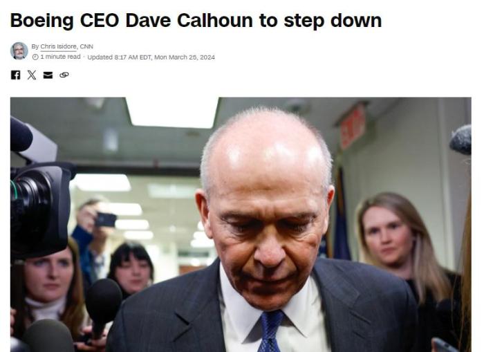 外媒:波音CEO卡尔霍恩将于2024年年底卸任