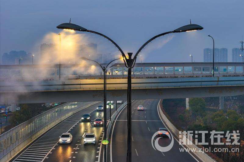 路灯变身“加湿器” 杭州部分高架路段上线“神器”应对马路扬尘